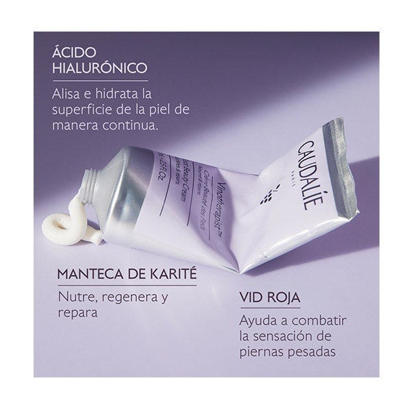 Extracto de vid roja : Producida en Francia y rica en taninos y flavonoides, ayuda a combatir la sensación de piernas pesadas y alivia las rojeces que pueden aparecer con la sequedad de la piel.