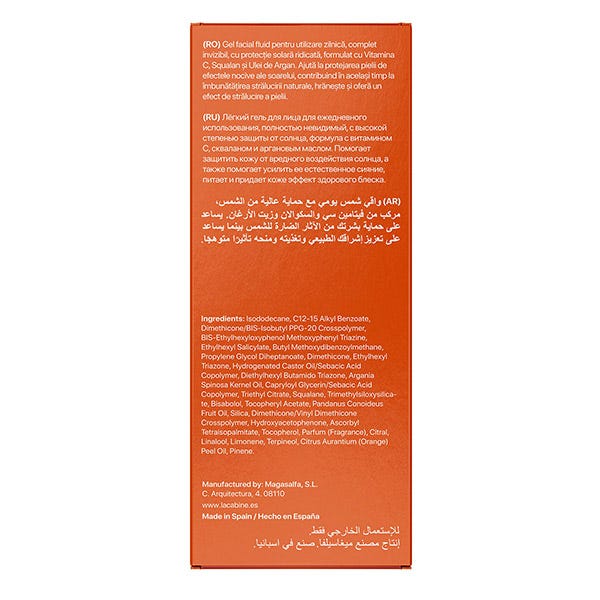 Crema fluida solar de uso diario. Protección SPF30 formulada con Vitamina C, Escualano y Aceite de Argán. Potencia la luminosidad y aporta un efecto glow.
