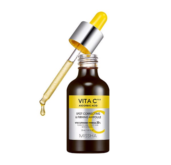 Un sérum reafirmante enriquecido con vitaminas, formulado con Vita C Liposome Formula que encapsula la vitamina C (99% de pureza) y el colágeno en una microcápsula para aportar rápidamente a la piel ingredientes eficaces para el cuidado de la piel y conseguir un cutis más luminoso y firme".