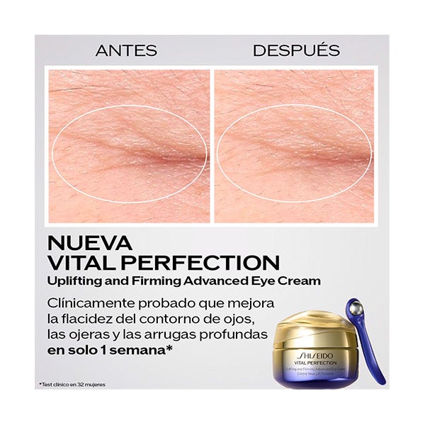 Inspirada en la experiencia de Shiseido en diversas áreas científicas, Vital Perfection es nuestra línea antienvejecimiento número 1, diseñada especialmente para corregir de manera efectiva múltiples signos de envejecimiento (pérdida de firmeza, manchas oscuras, piel apagada y falta elasticidad). Está clínicamente comprobado que mejora la apariencia de la piel, haciéndola más tersa, firme y luminosa.