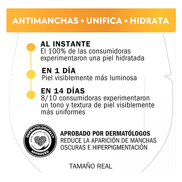 Y eso no es todo: la crema hidratante con vitamina C también hidrata la piel al instante durante 24 horas.