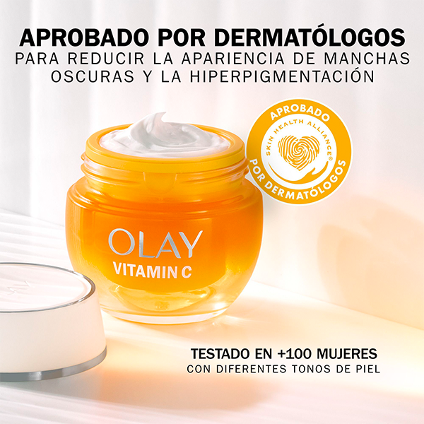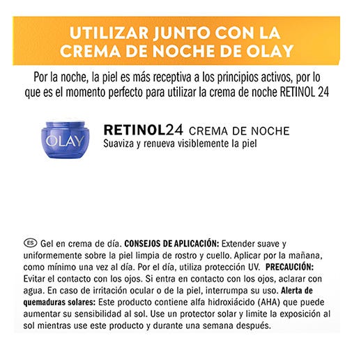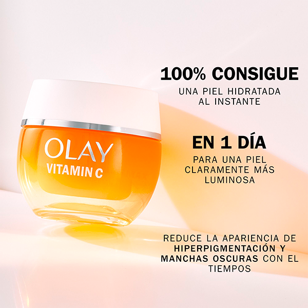 El crema facial Olay Regenerist Vitamin C + AHA 24 proporciona una piel más luminosa en solo 1 día y un tono y textura visiblemente más uniformes en 14 días.