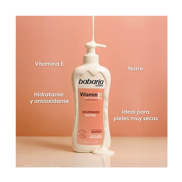 Nutre y protege profundamente tu piel con la loción corporal de vitamina E de Babaria. Especialmente formulada para piel muy seca, esta loción ofrece hidratación intensa y una potente protección antioxidante que ayuda a reforzar la barrera natural de la piel, aportando suavidad y nutrición duradera.