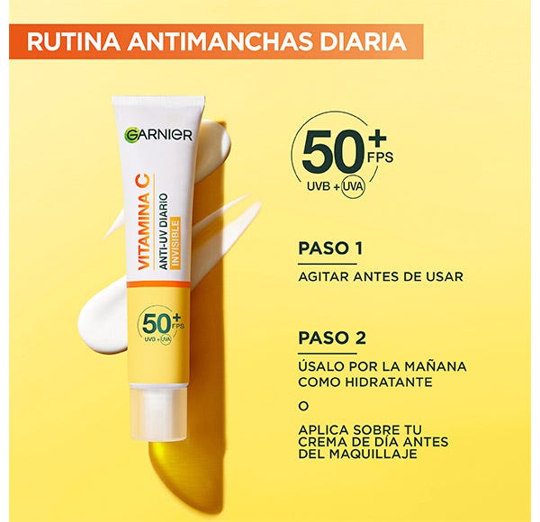 Este producto con acabado invisible no solo protege tu piel contra los daños del sol con SPF50+, sino que también combate visiblemente las manchas oscuras.
