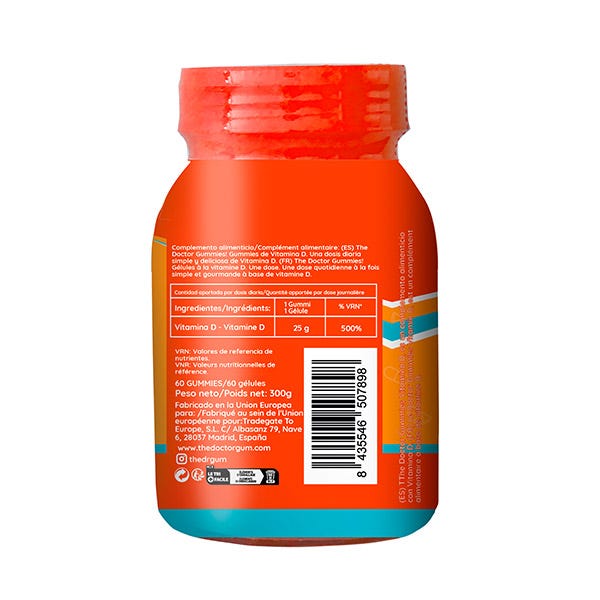 The Doctor Gummies Vitamina D con sabor a melocotón contiene vitaminas que ayudan a fortalecer el sistema inmune, los huesos y dientes.
