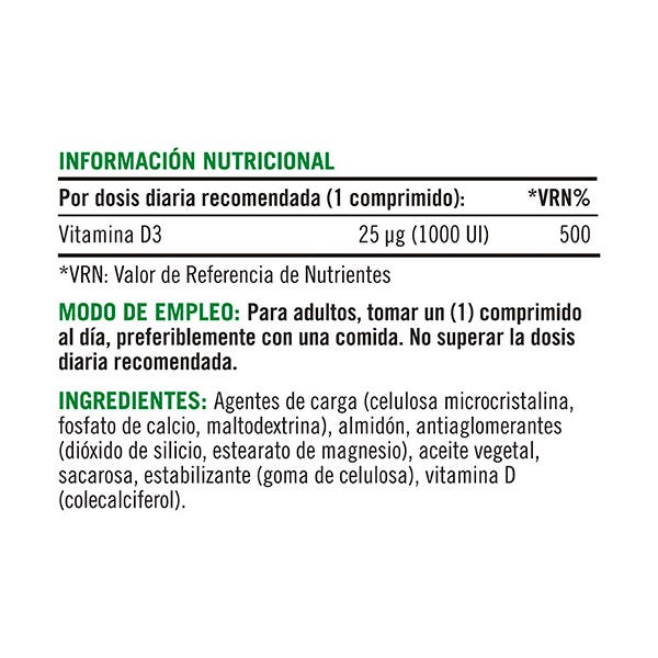 La vitamina D contribuye al mantenimiento de la salud de huesos y dientes y de la función normal del sistema inmunitario y al buen funcionamiento de los músculos.