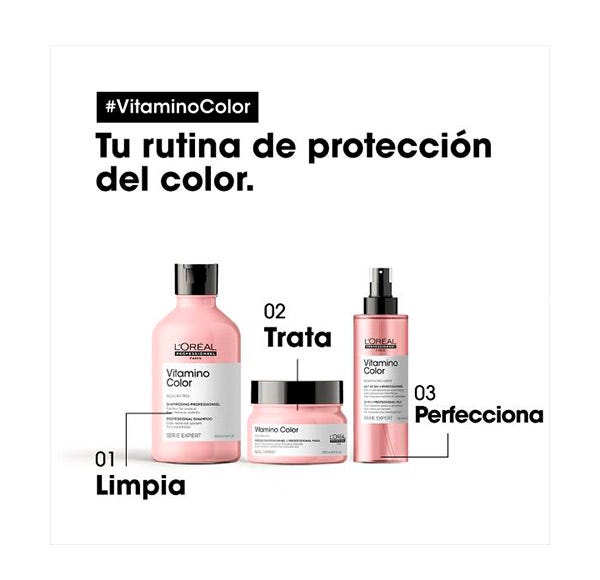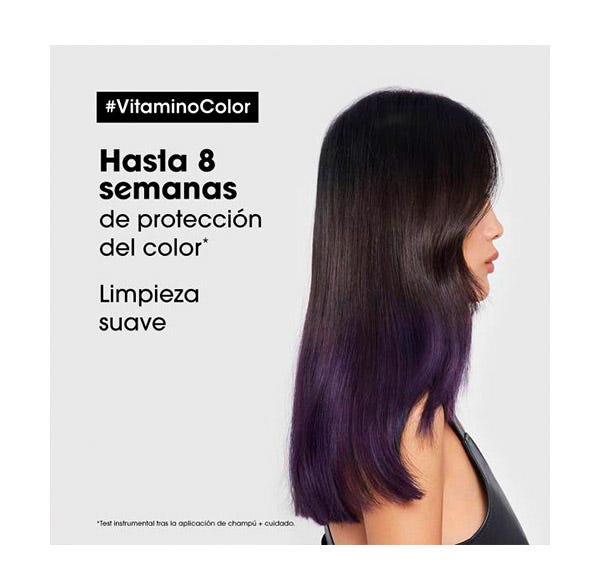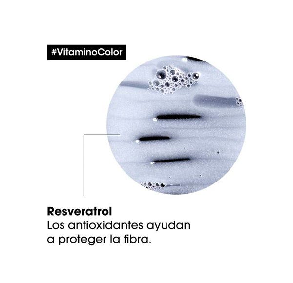Champú Vitamino Color con concentrado en ingredientes antioxidantes como el Resveratrol que eliminan suavemente las impurezas y protegen el cabello de color más sensible. El color está protegido y la tenacidad garantizada para lucir un color intenso.