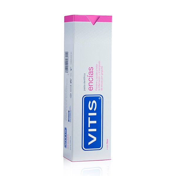 VITIS® encías es una pasta dentífrica de uso diario que previene y ayuda en el tratamiento de los problemas de encías como la inflamación, la rojez o el sangrado. El uso continuado previene la aparición de enfermedades de las encías, reduce el sangrado y mantiene unas encías sanas y en buen estado.