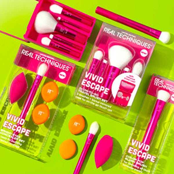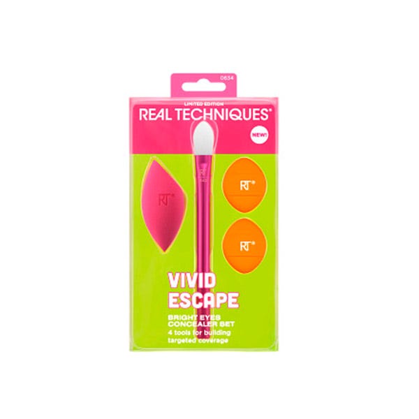 Prueba todos los productos de nuestra colección Vivid Escape de edición limitada: accesorios atrevidos y vibrantes diseñadas para destacar. El set de correctores Bright Eyes es fácil de limpiar con nuestro gel limpiador profundo Miracle de Real Techniques. También es 100% libre de crueldad animal, vegano y está diseñado con tecnología revolucionaria de espuma sin látex.