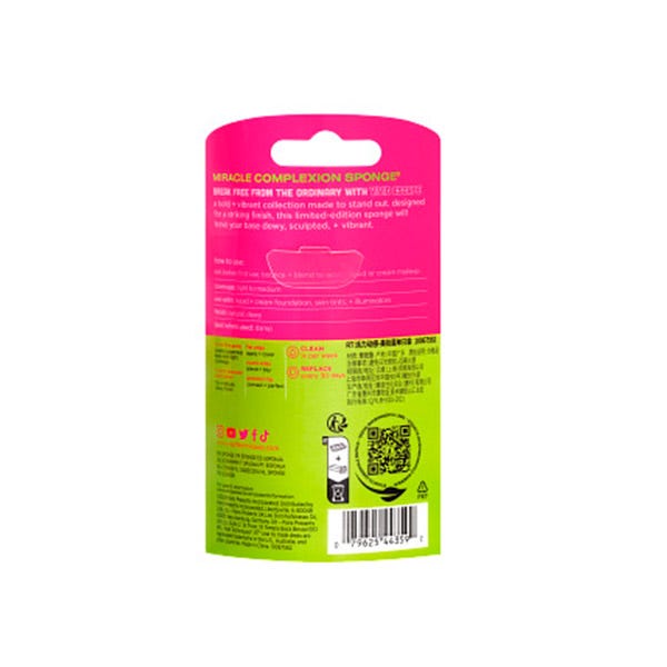 Esta esponja cuenta con la exclusiva técnica de aplicación de 3 puntos de Real Techniques, que permite una difuminación perfecta. Usa el borde plano para aplicar y cubrir, los lados redondeados para difuminar y difuminar, y la punta de precisión para ocultar y perfeccionar. Prueba todos los productos de nuestra Colección Vivid Escape de edición limitada: accesorios audaces y vibrantes diseñados para destacar. La Esponja Miracle Complexion es fácil de limpiar con nuestro Gel Limpiador Profundo Miracle de Real Techniques. Además, es 100 % libre de crueldad animal, vegana y está diseñada con una revolucionaria tecnología de espuma sin látex.