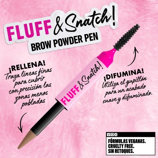 El Fluff & Snatch Brow Powder Pen no solo redefine tus cejas, sino que también eleva tu rutina de maquillaje con resultados profesionales y una experiencia sensorial única. Añádelo a tu colección y disfruta de unas cejas impecables, suaves y con un acabado perfecto que realza tu mirada en cualquier momento.
