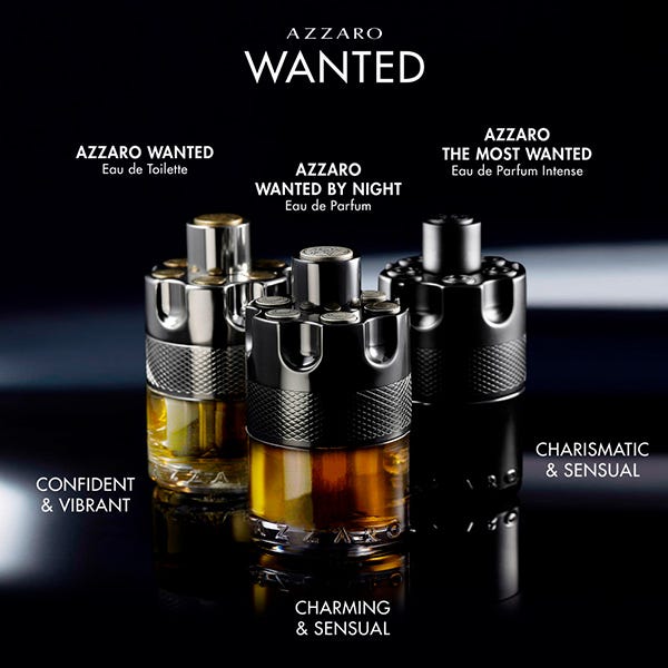 Creado para seducir y desear, Azzaro Wanted encarna los valores de la marca y el carisma de su fundador, Loris Azzaro. Entre brillo, seducción, hedonismo, generosidad, libertad y carisma; la fragancia juega con notas amaderadas calientes, aromas frescos y picantes; convirtiendo esta intensa armonía en un objeto de devoción, lujo y deseo.