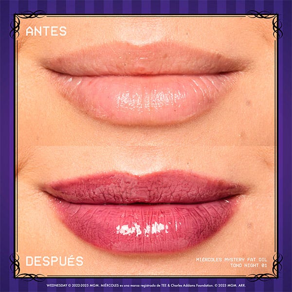 Prepárate para transformar tus labios con el aceite labial Wednesday Mystery Lip Oil, repleto de beneficios que van más allá de lo básico.