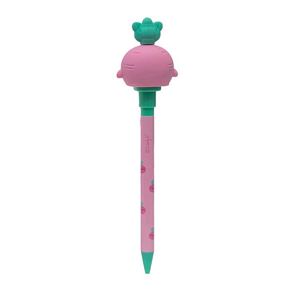 - Bolígrafo realizado en plástico, con nuestra remolacha Mr. Wonderful en su extremo, que sube y baja al abrir y cerrar el boli.