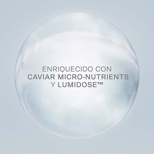 Los Caviar Micro-Nutrients, un componente único derivado del caviar, aumentan la energía de las células para favorecer la generación de fibras de colágeno y elastina. Como resultado, la piel refleja mejor la luz para un aspecto visiblemente más luminoso y firme.