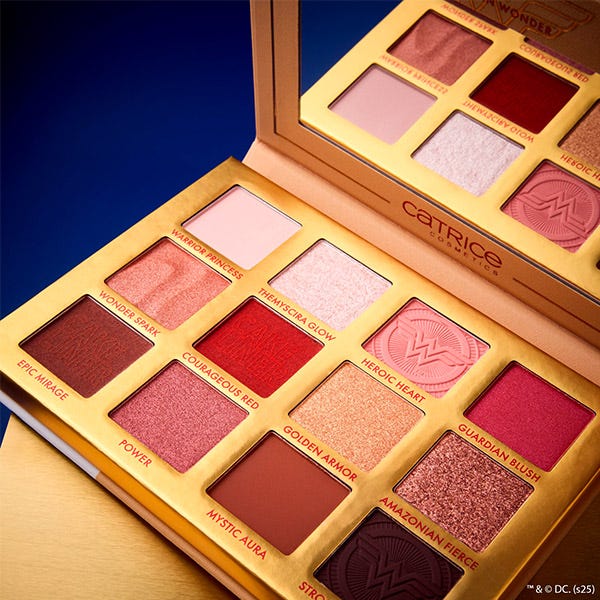 La Catrice Wonder Woman Eyeshadow Palette 010 Wonder Woman Story y el 020 Amazonian Warrior ofrecen posibilidades ilimitadas para tu look de maquillaje. Mientras que 010 Wonder Woman Story combina cautivadores tonos azules, marrones y dorados, 020 Amazonian Warrior presenta impresionantes tonos rojos, rosas y dorados. Con 12 tonos intensamente pigmentados, cada paleta incluye 2 delineadores en crema y 10 sombras de ojos. Ambas paletas están diseñadas para crear de todo, desde looks sutiles de diario hasta estilos atrevidos y dramáticos. Presentan una mezcla de texturas supersuaves con un alto rendimiento, incluidos mates suaves, brillos deslumbrantes y metales brillantes, lo que garantiza una mezcla perfecta y un acabado impecable.