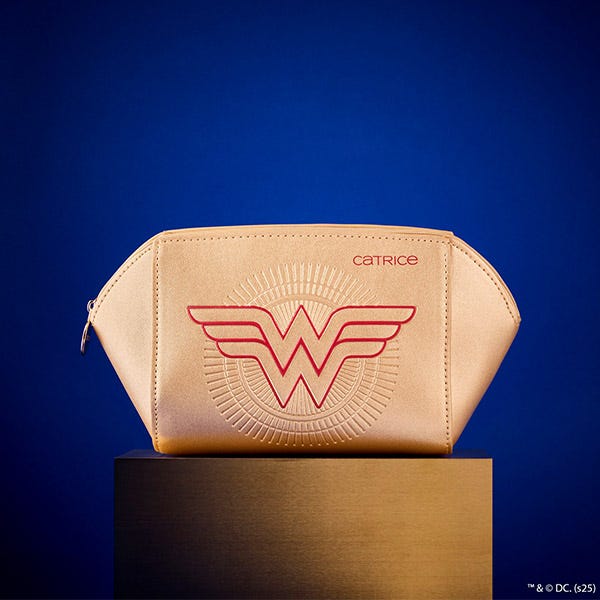 Abraza la belleza y el poder con el bolso de maquillaje Catrice Wonder Woman, fabricado con material de PVC en dorado brillante, grabado con elementos de diseño y estampado directo en rojo. Perfecto para guardar tus productos Catrice Wonder Woman, este bolso añade un toque de glamour a tus básicos de diario. El neceser de maquillaje se ha elaborado con cuidado y ofrece espacio suficiente para tus artículos de belleza imprescindibles. El acabado dorado brillante captura el espíritu de Wonder Woman, uniendo estilo y funcionalidad para un look tan atrevido como tú.