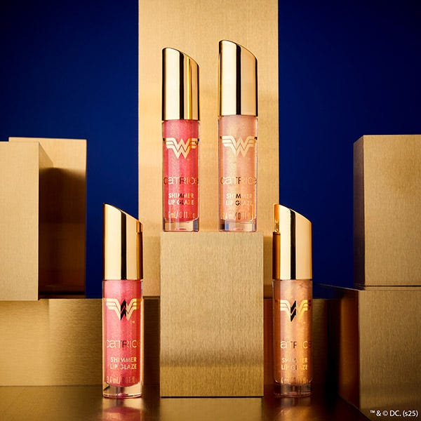 Deléitate con el lujoso brillo de Catrice Wonder Woman Shimmer Lip Glaze 010 Believe In Wonder, una impresionante mezcla de aceite de labios y brillo con un brillo dorado y un delicioso aroma de coco, y 020 Brave and Powerful en un tono rosado con un brillo rosa dorado y un dulce aroma de fresa. Esta fórmula de alto brillo es ligera pero reparadora, infusionada con un brillo ultrafino que captura la luz de manera hermosa. La textura brillante y no pegajosa mantiene tus labios hidratados, dejándolos suaves, flexibles e irresistiblemente brillantes.