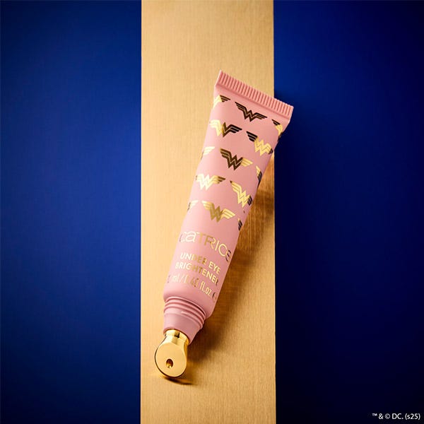 Ilumina tus ojos con el iluminador para debajo de los ojos Catrice Wonder Woman. Este iluminador para ojos facilita agregar un toque de luminosidad a tu rutina diaria. La fórmula con un tono rosado claro está diseñada para iluminar al instante la zona debajo de los ojos, dándote un aspecto fresco y descansado. Este iluminador, con un envase tubular de metal dorado, proporciona una sensación calmante y refrescante que ayuda a reducir la hinchazón mientras aplica la cantidad justa de producto. Despierte los ojos y siéntase preparado para conquistar el día con confianza.