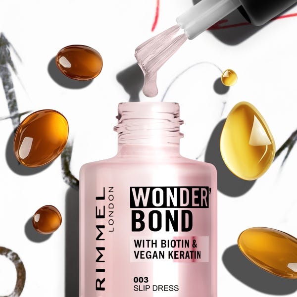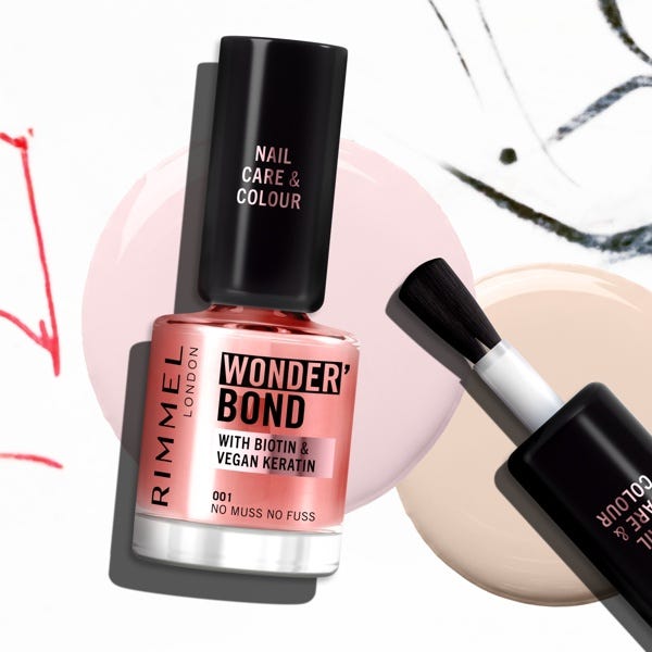 Lleva tus uñas a otro nivel con el esmalte de uñas Bond Wonder' de Rimmel, tu nuevo imprescindible 2 en 1 que te aporta cuidado y color. Con una infusión de biotina, queratina vegana y aceite de argán, esta fórmula no solo proporciona un acabado brillante, sino que fortalece, nutre y revitaliza las uñas desde la primera pasada.