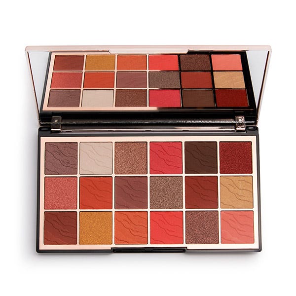 Deje que su lado salvaje deambule libre con 18 tonos de pigmentos prensados mate y brillo en una paleta impresa.