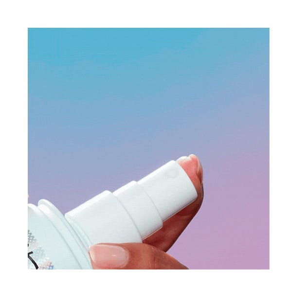 ¿QUÉ HACE? Esta herramienta multitarea e imprescindible, alarga la duración de tu maquillaje hasta 16 horas manteniéndolo fresco todo el día, mientras ayuda a controlar el exceso de aceites y los brillos. Además, a diferencia de otros aerosoles que pueden dejar tu piel seca y tensa, ¡esta bruma ligera trabaja para calmar, hidratar y revitalizar tu piel al instante!