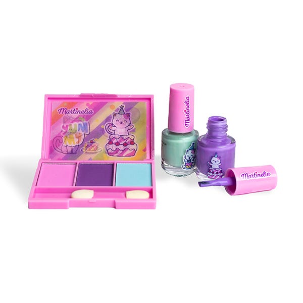 Descubre la magia del maquillaje con nuestra Colección Yummy. Este set incluye una paleta con 3 sombras de ojos vibrantes y dos lacas de uñas divertidas.