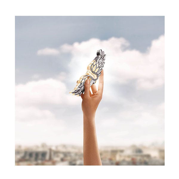 Desafiando las convenciones, el disruptivo frasco en forma de ala es un símbolo de libertad.