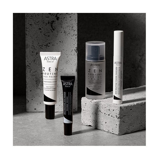Zen Routine es la colección de Astra Make-Up dedicada al mundo del prebase: fórmulas de alto rendimiento capaces de aumentar la duración del maquillaje a través de una sensorialidad relajante y satisfactoria, organizadas en pasos rituales en un jardín zen ideal. Producto con certificación de calidad vegana.