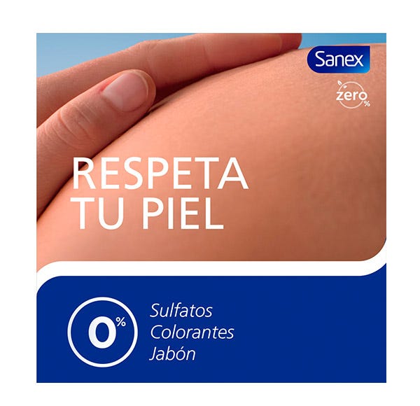 El gel de ducha o baño Sanex Zero% para pieles sensibles.