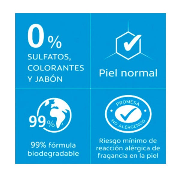 No contiene ni sulfatos, ni colorantes, ni jabón.